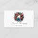Business cards with a pretty Christmas wreath. A festive image with a pine wreath decorated with red flowers, holly and a lovely blue bow. Delightful.