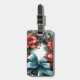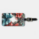 A luggage tag with a pretty Christmas wreath. A festive image with a pine wreath decorated with red flowers, holly and a lovely blue bow. Delightful.