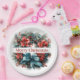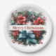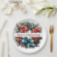 Pine Wreath with Red Flowers and Holly Paper Plate