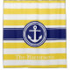 Pineapp Yellow Wt Navy Blue Nautical Stripe Anchor Shower Curtain