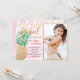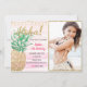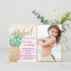Tropical Birthday Invitation Card with Personalised Photo, Gold Glitter Frame, String Lights and Gold Tropical Pineapple