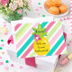 A lovely bridesmaid proposal card, this "Will you be my Bridesmaid?" theme is the perfect way to invite someone to be a bridesmaid for your wedding. Featuring a pink, green and blue striped background, with a bright yellow pineapple front and centre "Will you be my bridesmaid" is personalised within. The back has the same diagonal striped design as the front. Personalise yours today!