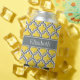 Pineapple Yellow, Dark Grey and White Moroccan Quatrefoil Trellis Pattern #5DS, Charcoal Grey Ribbon Name Monogram Label
