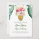 Sunny pineapple fruit and tropical watercolor flowers vase summer beach rehearsal dinner invitations