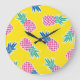 Pineapple Frenzy: Bright Cartoon Vintage. Large Clock