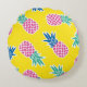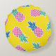 Pineapple Frenzy: Bright Cartoon Vintage. Round Cushion