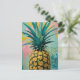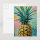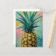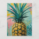 This vibrant and textured artwork features a close-up, stylized depiction of a pineapple. The fruit's intricate, golden-yellow skin is rendered with bold, expressive strokes, while its spiky, teal-colored leaves fan out in a crown-like arrangement. The background is an abstract tapestry of soft pinks, yellows, and teals, painted with a brushy, impressionistic texture that contrasts beautifully with the defined form of the pineapple. The piece combines a sense of natural realism with a lively, abstracted background, creating a visually dynamic and engaging composition.