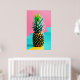 A succulent pineapple takes centre stage against a retro backdrop of pink, blue, and yellow, its golden texture echoing the vibrant hues of the vintage palette. The tropical fruit, with its prickly exterior and sweet promise, becomes a visual symphony of nostalgia and freshness.