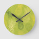 Pineapple Outline Pattern on Green Round Clock