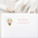 Pineapple with a crown of a beautiful bouquet of roses and leaves. Pink name and address, trendy hand written font. Pink, coral, yellow, blue, green, turquoise, brown. Modern, fresh, joyful, cute.
