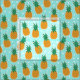 Find your tropical place with this fun pineapple print! Features cute orange pineapples on a light aqua background with white polka dots.