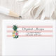 Coo pineapple with tropical flowers on pink stripes. An elegant and sophisticated design. Customise with your name and address details.