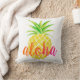 This fun, vibrant pillow features a colourful watercolor painted pineapple with the phrase 'aloha' in a pink and orange ombre. This would be a great addition to your outdoor patio furniture or to brighten up your room.