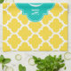 Pineapple Wht Moroccan #5 Teal 3 Initial Monogram Tea Towel