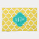 Pineapple Yellow and White Moroccan Quatrefoil Trellis Pattern #5, Teal Quatrefoil 3 Initial Monogram