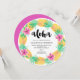 Get ready for a fun, tropical celebration! This design can be used for any event and features bright tropical pink flowers, yellow pineapples and green palms with faux gold foil accents.