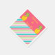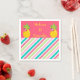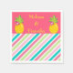 These lovely napkins feature two pineapples at the top on a pink background. In between the pineapples is the name of the couple written in yellow. Below the pineapples is a pink, green, and blue diagonal striped pattern. Absolutely breath-taking. Place your order today!