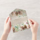 AVAILABLE WITH OR WITHOUT A QR CODE TO SCAN. This simple yet elegant design has a modern look, with sprigs of green pine and red berries on a soft white blur overlay on a gold glitter background. Add a QR code to your invitation so that gusts can quickly access your wedding Website for details, directions, menu options, and more, or add your gift registry Web URL. Personalised All-In-One invitations are a unique combination of both a beautifully printed custom invitation with an easy to tear off perforated RSVP postcard. And they are so easy to use! You simply fold, then seal the back flap with the three included clear stickers, and mail. And when your guests receive your custom invite, they jus t tear the perforated RSVP Card off and drop it back in the mail to you!