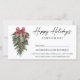Modern Elegant Calligraphy Ink Script Watercolor Pines Winter Greenery with Burgundy Red Ribbon Bow Christmas Ornaments, Pine Cones and Holly Berries Happy Holidays Business Gift Certificate with Envelope. Green
