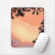 This mousepad is decorated with an abstract design of pine branches silhouetted against a brilliant sunset sky of orange, pink, yellow and mauve.
