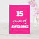Funny pink 15 years of awesome card, which you can easily personalise the inside card message if wanted. A great 15th birthday card for her.
