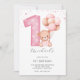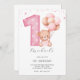 Pink 1st Birthday, Teddy Bear Invitation