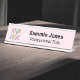 Easily personalise our interchangeable office desk name plate with your business logo, name, job title, or other custom text. Available in light pink and other colours (all colours are customisable). Available in other metal colours in two sizes – standard 2 inch x 8 inch or long 2 inch x 10 inch – and in two styles – as a desk name plate or a hanging name plate. No minimum order quantity and no setup fee.
