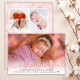 Pink 3 Photo Collage Birth Announcement Card