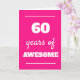Modern pink 60 years of awesome card for her 60th birthday, which you can easily personalise the inside card message if wanted.