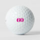 "60" or any age. Hot Pink text. Woman golf ball. Generic. Titleist Pro V1. Women golf gift. Woman pink golf gift. 60th birthday.