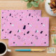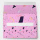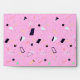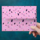 A pink confetti envelope design inspired by the cool geometric and abstract art of the 80s.