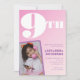 Pink 9th birthday invitations for her Retro Photo gradient