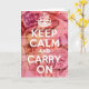 Pink Abstract Keep Calm and Carry On, Birthday Card