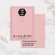 This badge reel display card features a simple black and blush bubblegum pink design. It depicts a pinstripe black border, a place to add your logo, and matching modern typography. On the back, it includes contact information that can be changed completely or personalised to your details. It's a professional, elegant, and stylish way to display your product with pride. (badge reel lines are printed markers only, cutting must be completed by the customer)