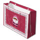 Cute pink African-American Santa Claus and snowflakes Christmas holidays large gift bag. It showcases a whimsical black Santa Claus and snowflakes on viva magenta background with a white and pink border.