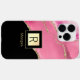 Pink Agate, Name & Monogram, Black & Gold Box Case-Mate iPhone Case