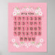 Pink Alef Beis Poster with white flowers. Sweet for any girls room. Clear depiction of hebrew letters.