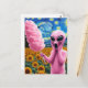 Pink Alien Screams in Van Gogh Sunflower Field Postcard
