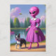 Pink Alien Walks Her Boston Terrier Postcard