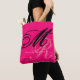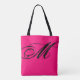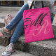 A stylish and pink tote bag with your name and initials monogrammed in a script font style