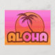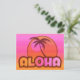 Hawaiian design featuring a palm tree and sunset in shades of pink and orange. Retro style text says ALOHA. Pink and orange gradient background. Customise it with your own personal text. Keep that vacation feeling all year long. PinkInkArt original!