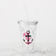 Pink and black anchor with lights monogrammed acrylic tumbler.
