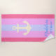 Super cute summer beach towel in pink and blue with an anchor and stripes. Perfect for a gift for a friend or bridesmaid. The design is colourful and customisable add your name or any person's name for a special gift plus your favourite city or short message. Start customising your product now!