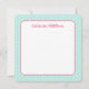 This cute note card features a Christmas ornament in soft shades of pink and aqua with a matching pink bow on top. The back features matching aqua and tiny white polka dots. Personalize the front with your choice of special text and back with your choice of name. Fun for gift tags and party favors.