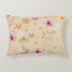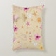 Custom-designed throw pillow with pink and beige colours and whimsical flowers, hearts and stars design. Perfect accent pillow. Made in the U.S.A.