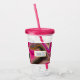 Acrylic tumbler with a groovy looking abstract design. Pink and black colours mix and mingle together in a swirling motion. Sprinkles of faux gold glitter in between the layers. A white rectangle frame with a faux gold foil border, layered over top with your personalised text inside.