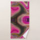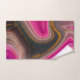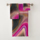 Towel set with a groovy looking abstract design. Pink and black colours mix and mingle together in a swirling motion. Sprinkles of faux gold glitter in between the layers.