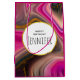 Happy Birthday gift bag with a groovy looking abstract design. Pink and black colours mix and mingle together in a swirling motion. Sprinkles of faux gold glitter in between the layers. A white circle frame with a faux gold foil border, layered over top with your personalised text inside.