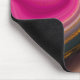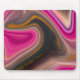 A mouse pad with a groovy looking abstract design. Pink and black colors mix and mingle together in a swirling motion. Sprinkles of faux gold glitter in between the layers.