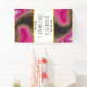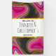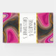 A wedding banner with a groovy looking abstract design. Pink and black colours mix and mingle together in a swirling motion. Sprinkles of faux gold glitter in between the layers. A white rectangle frame with a faux gold foil border, layered over top with your personalised text inside.